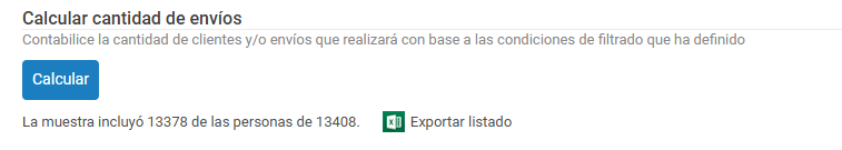 En la sección Cálculo , puedes calcular previamente la cantidad de chats seleccionados como resultado del muestreo.